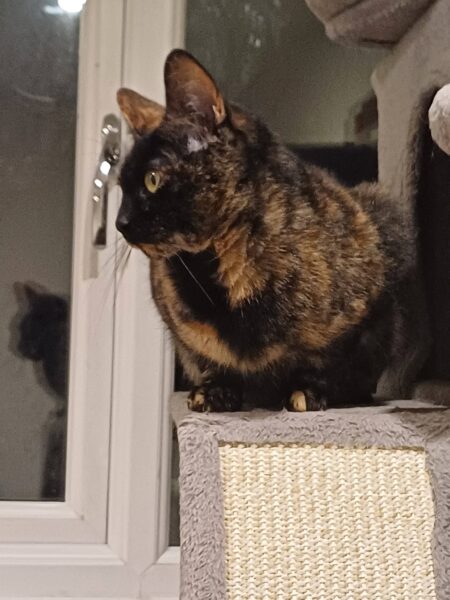 They’re clean and good at using a litter tray, and both have low maintenance lovely coats that are starting to shine now that their fleas have been treated and gone. They’re a really lovely pair of girls who snuggle up and sunbathe together and groom eachothed. They have also been used to living with Paneer.