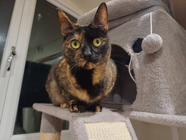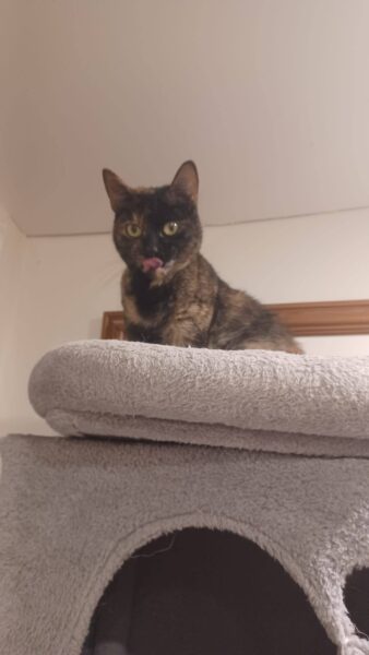 They’re clean and good at using a litter tray, and both have low maintenance lovely coats that are starting to shine now that their fleas have been treated and gone. They’re a really lovely pair of girls who snuggle up and sunbathe together and groom eachothed. They have also been used to living with Paneer.