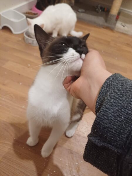 Madras is a little more forward in getting love, Tikka definitely follows her lead. They are booth super sweet, affectionate girls who wind round your legs, and love head bumps and to cuddle up next to you on the chair.