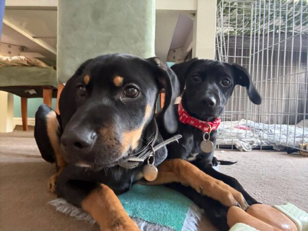 We know they have lab, spaniel and staffie in the mix, but there may be other bits too. Either way they are gorgeous and really smart little pups who are already a good way into their indoor house and crate training, and need normal pup socialising here, there and everywhere 🐾