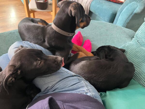 These puppies can live with children and all other animals and it would benefit them to go into homes with existing well balanced dogs, or where families are committed to their training and development. They are currently in foster in Shefford, Beds and are ready now. Please ensure before applying that all family members are on board, and that their training has been factored into your life, as these pups deserve all the love in the world 🐾