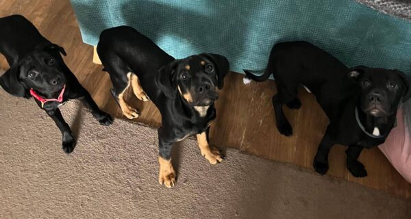 Bhaji (female), Poppadom and korma (males) are 16 week old medium sized crossbreed pups 🐶