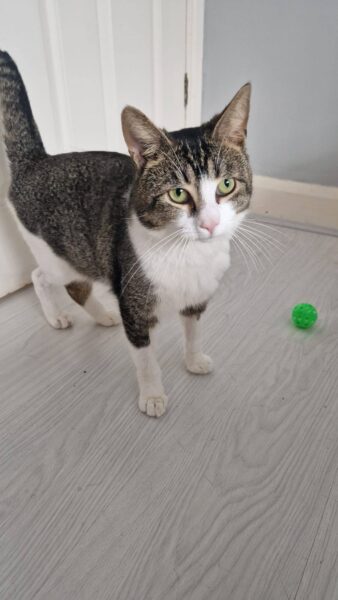He’s currently in foster in Campton, Beds and is ready for his forever family now. We aren’t sure whether he lived with other animals before, so easier to go as only cat or to somewhere very experienced and patient with bonding.