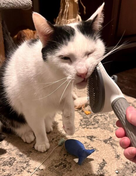 This pair have been used to living with other cats, and are used to being indoor only, so can stay this way or would need slow introductions to a super safe outdoor environment. They’d be perfect for those who would prefer an indoor pair. They’d like a predicable environment with no teeny children, but are friendly and would love company.