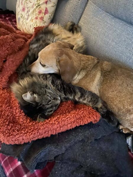 She’s 10 years old and has been used to living with another cat, and absolutely loved her little dog friend